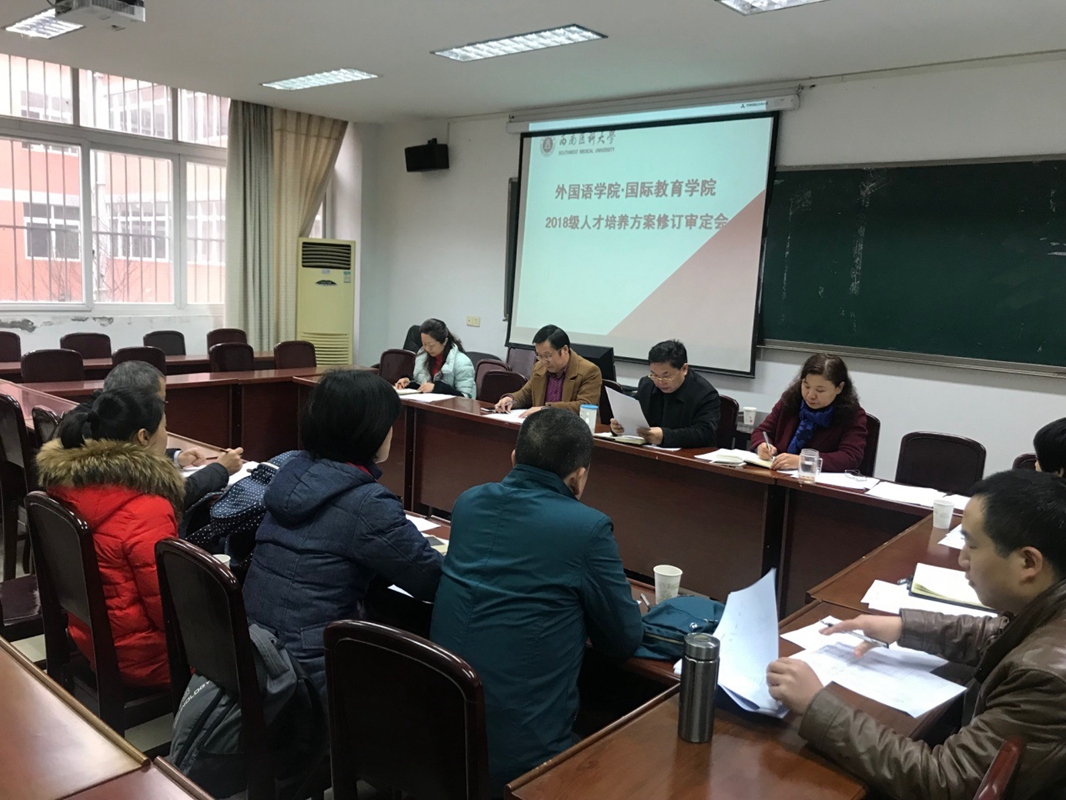 12月15日下午,外国语学院教学指导委员会全体成员在学院办公室召开2018级人才培养方案审订会议。会议由外国语学院副院长傅静主持。
