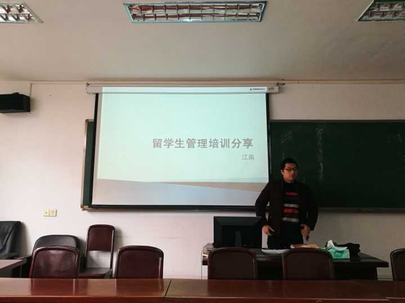 12月21日下午,国际教育学院在学院会议室开展了留学生管理培训分享会。会上,留学生管理负责人江南分享了在10月24-28日参加的2017年来华留学管理基层干部基本技能培训的内容和心得体会。