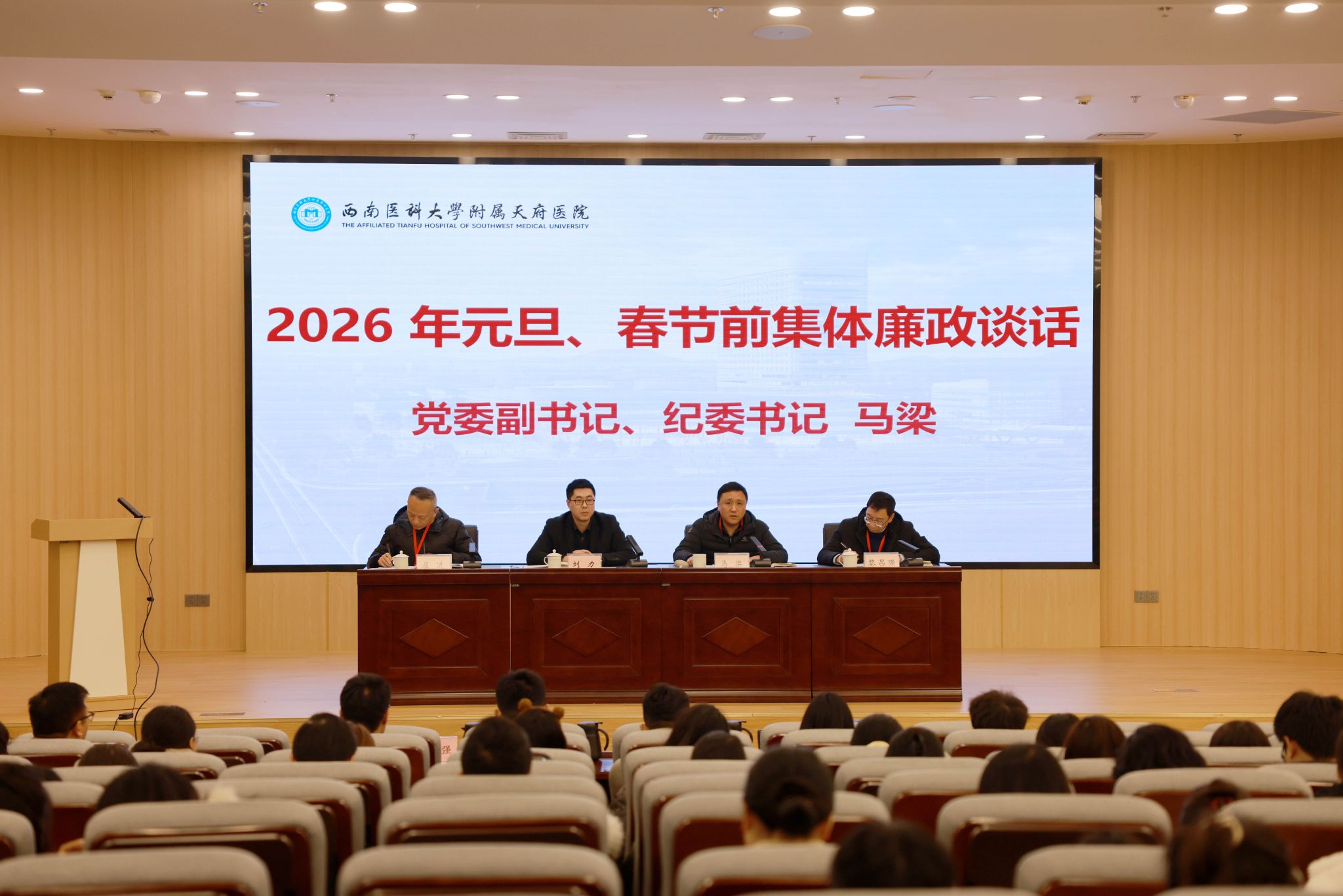为落实全面从严治党要求,筑牢节日廉洁防线,12月30日,附属天府医院在家院领导和全院职工参加2026年元旦、春节前集体廉政谈话会。医院党委副书记、院长刘力主持会议。