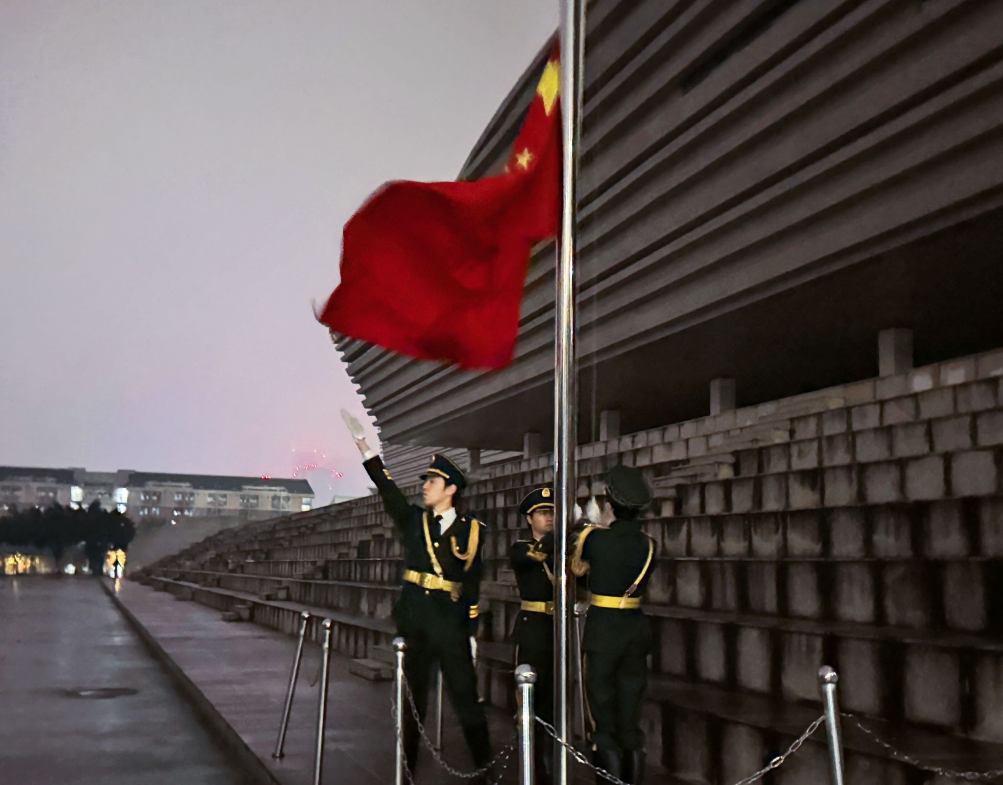 在辞旧迎新之际举行升旗仪式,旨在厚植学生爱国情怀,增强学生国家荣誉感与集体归属感,激励大家铭记历史、展望未来,将个人成长主动融入国家发展,在2026年的新征程上携手前行,为实现中华民族伟大复兴贡献青春力量。