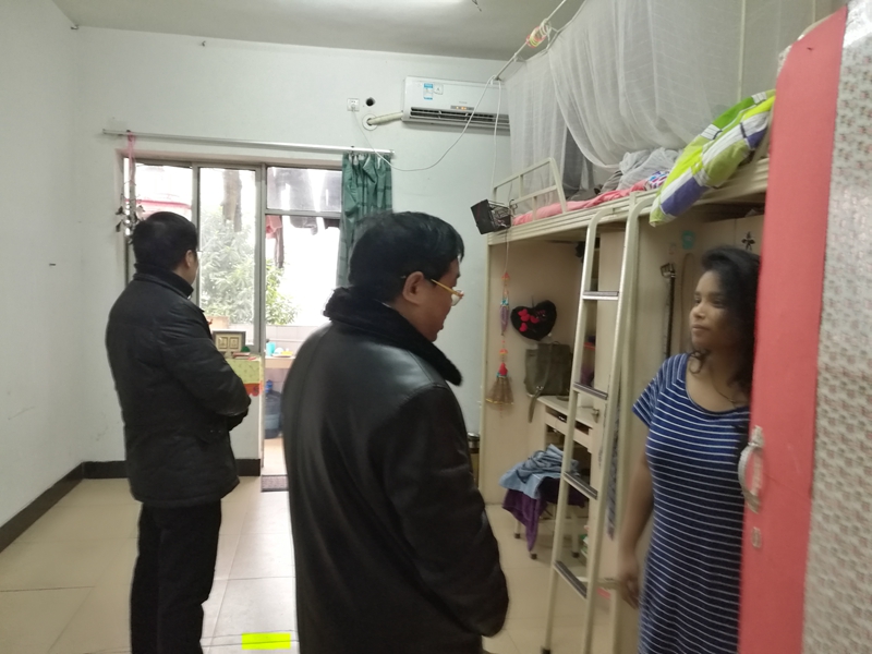1月15日上午九点半外国语学院·国际教育学院开展了安全大检查工作。党总支书记李昌平首先主持召开由处科级干部以及留学生辅导员参加的安全检查工作布置会并传达上级主管部门相关文件精神。随后党总支书记李昌平、院长田耘带队深入学院语音实验室、办公区域、留学生宿舍,通过实走访、严问询,深挖细查可能存在的安全隐患,力戒形式,不走过场,确保检查工作不留盲区、不留死角、不留余地、不留尾巴。