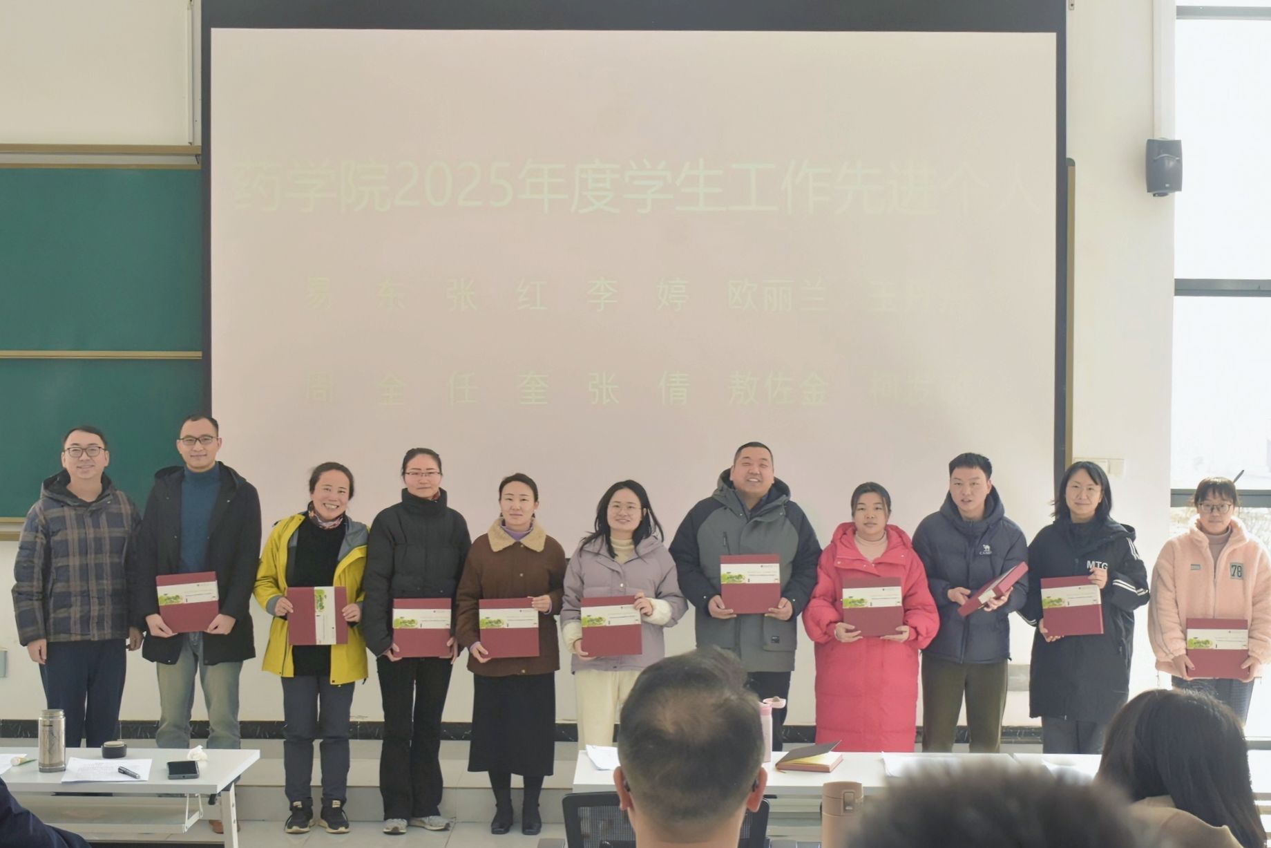 会议对2025年度在教学、科研、学生工作等领域表现突出的先进个人进行表彰,并为受表彰教师逐一颁发奖品。