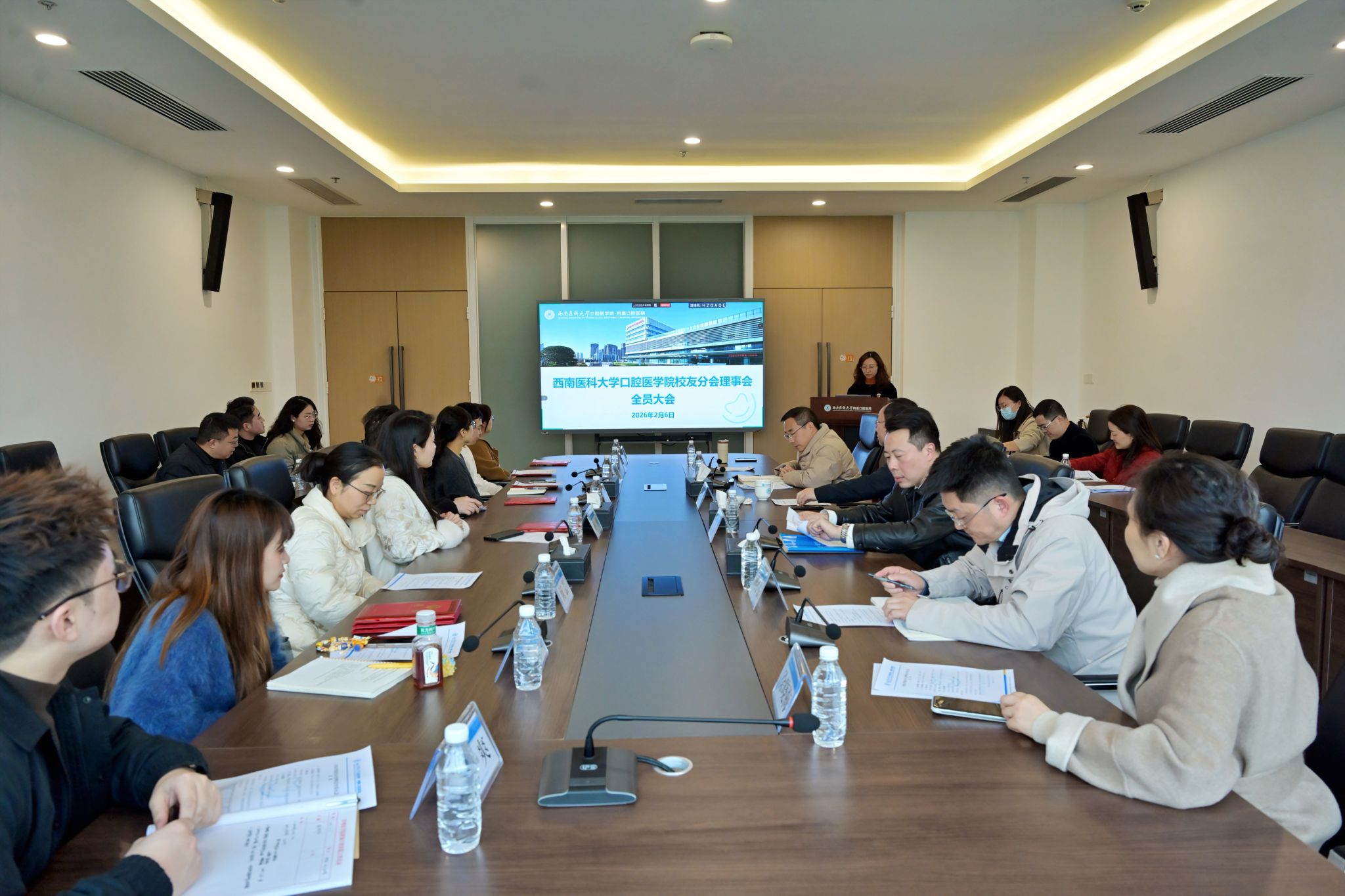 为凝聚校友力量,共叙同窗情谊、共话发展愿景,2月6日下午,西南医科大学口腔医学院校友分会理事会全员大会以“线上线下相结合”的形式召开。学校党委常委、副校长、校友分会名誉会长聂敏海出席会议,学院全体在家院领导及泸州校友理事会成员在云峰院区行政楼一会议室参会,外地校友理事会成员通过腾讯会议远程参会,会议由校友分会秘书长黄钰主持。