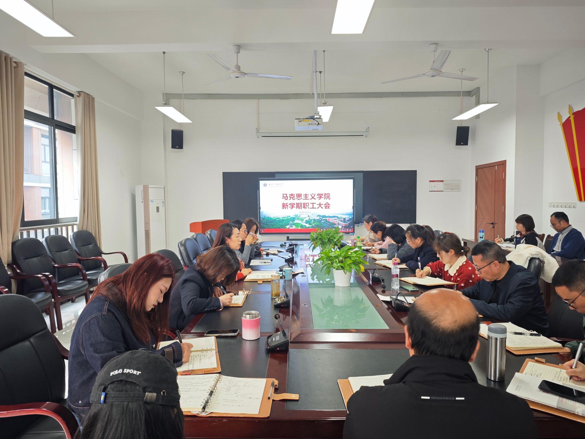 2月27日上午,马克思主义学院于文渊楼432会议室召开新学期教职工大会。会议由院长黄晓利主持,学院全体教职工参加。