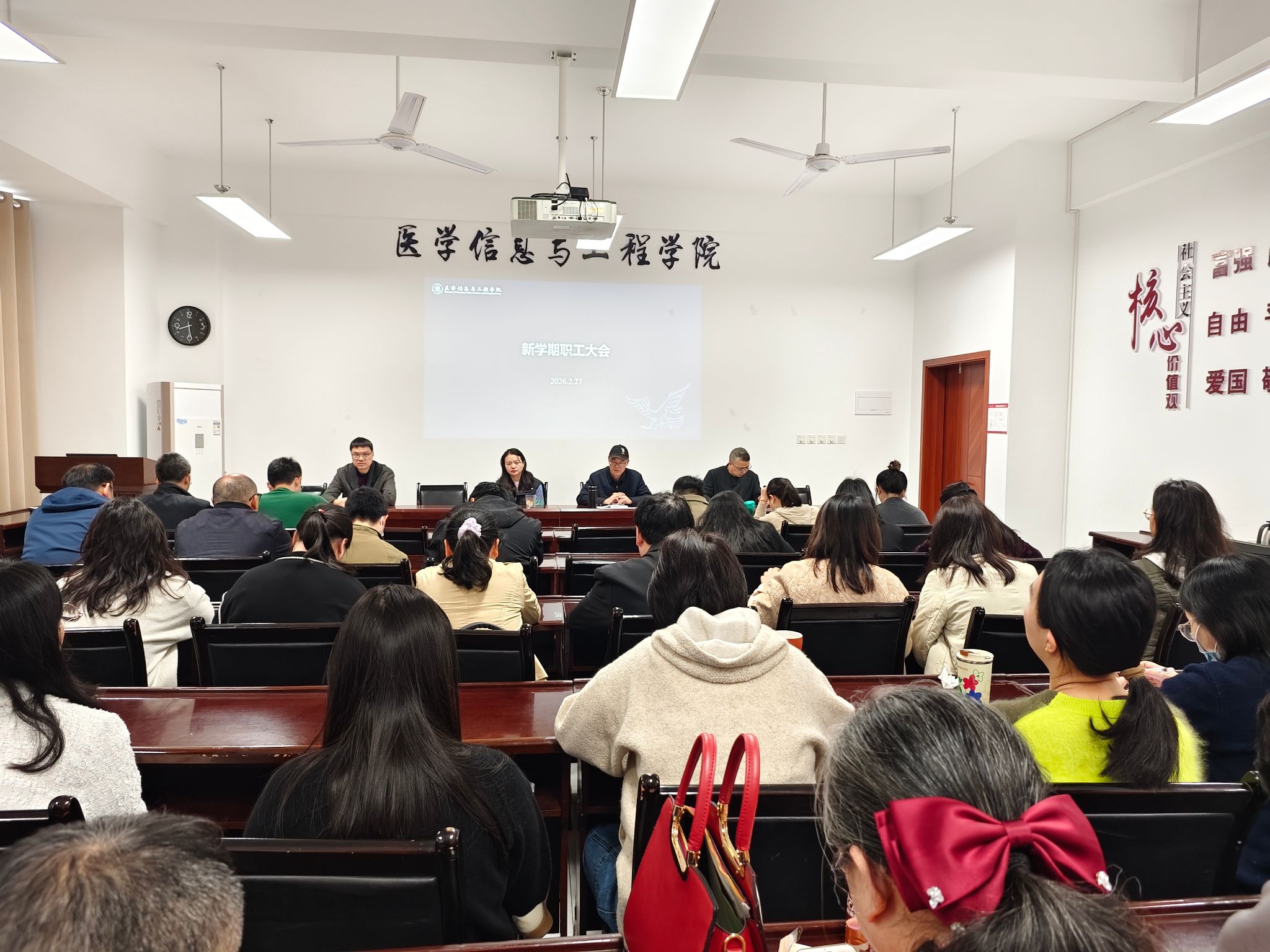 2月27日,医学信息与工程学院在文渊楼325会议室召开新学期职工大会。会议由党政办公室主任万江中主持,全院教职工出席了此次会议。