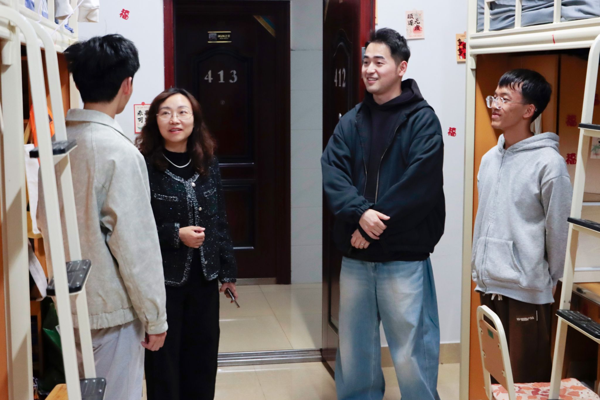 会后,学院党委副书记、纪委书记黄钰同志带队深入学生寝室,看望慰问返校学子。走访期间,老师们与同学们亲切交谈,细致询问大家的寒假生活、返校适应状态、新学期学习规划及实际生活需求,耐心倾听同学们的心声。老师们勉励大家以口腔医学教育四十周年高质量发展大会系列活动为新起点,坚定学习目标,勤学善思、团结互助,在温馨和谐的宿舍氛围中携手成长、全面进步。