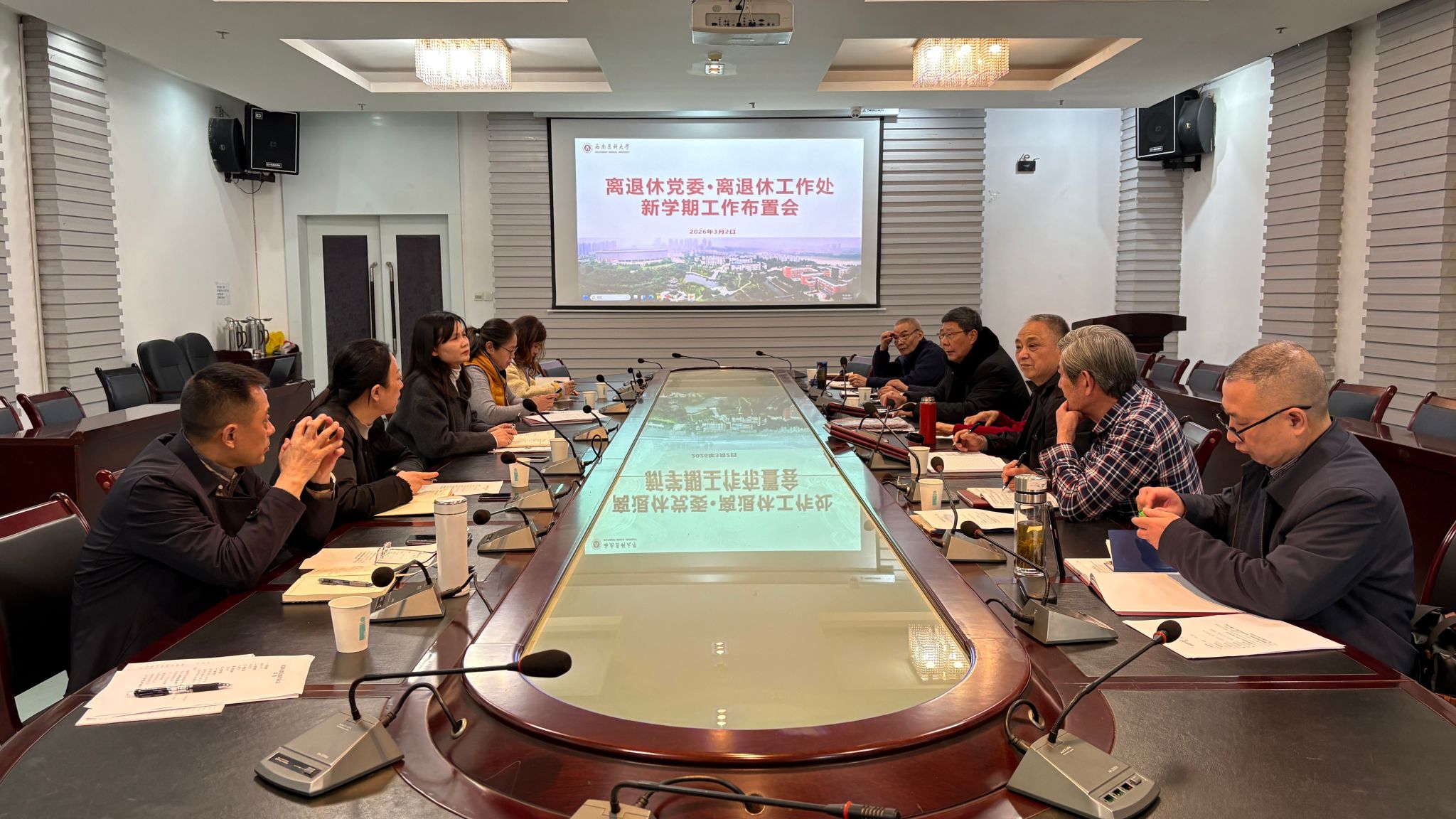 3月2日,离退休党委·离退休工作处在城北校区三会议室召开新学期工作布置会。离退休党委各党支部书记、部门在职员工参加会议。会议由离退休党委书记、离退休工作处处长李建英主持。
