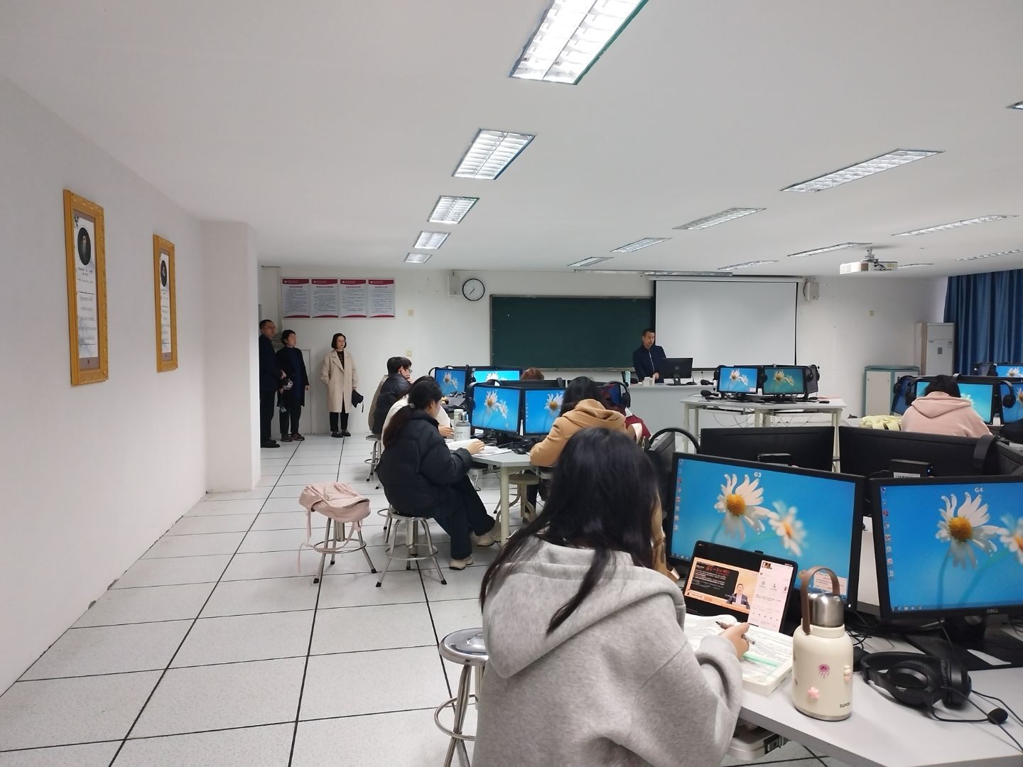 本次教学检查重点围绕教师到岗情况、学生出勤情况、教学设施运行状态以及课堂教学秩序展开。学院党政领导还对语音室、多媒体教室等教学场所进行了实地走访,详细检查了教学环境中的教学设备运行情况。从检查情况来看,新学期开学第一天,全院课堂教学秩序井然,教师备课充分、精神饱满,学生到课率高、听课认真,教学设备运行良好,各项教学工作开展有序。