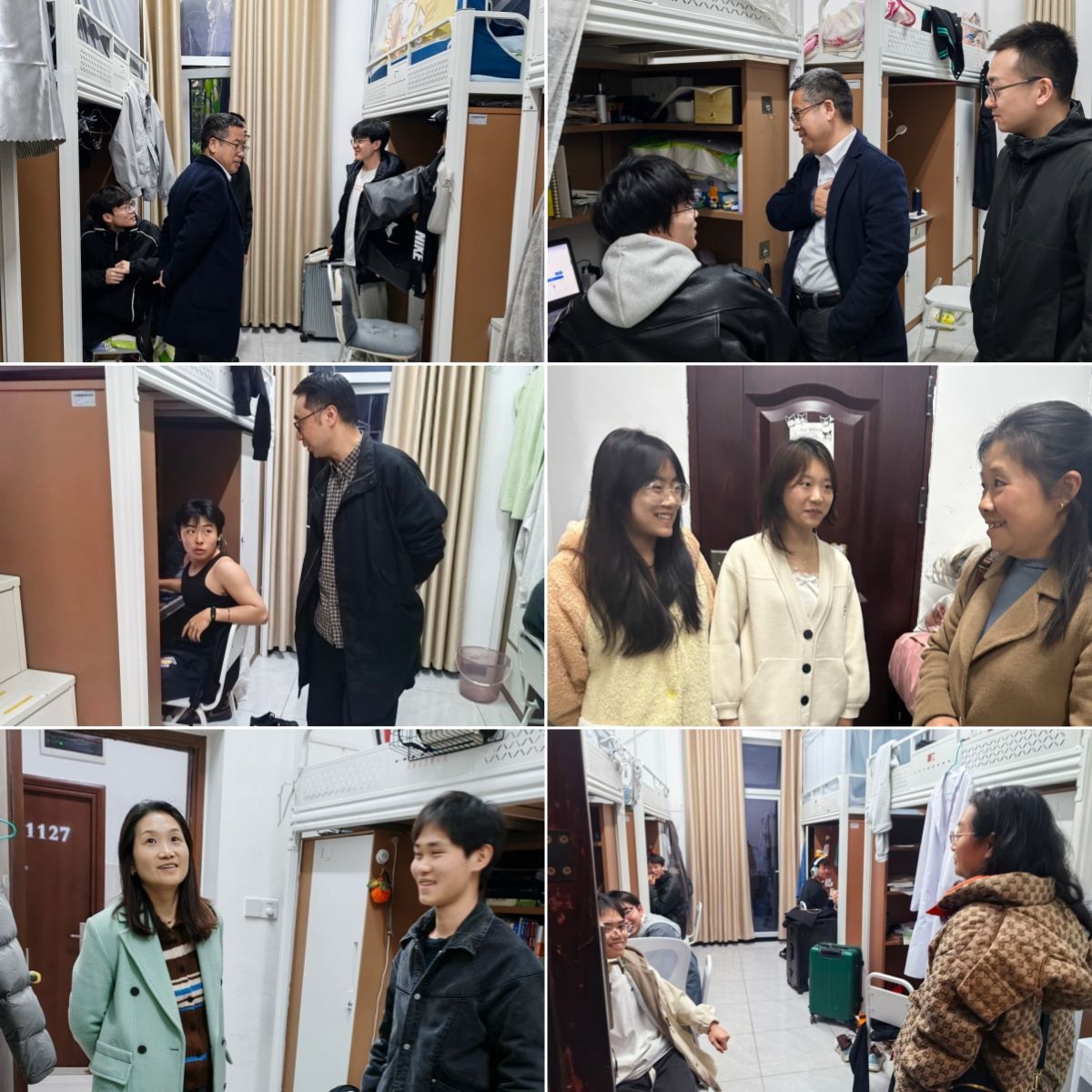 走访过程中,学院领导与同学们进行了亲切交谈,详细询问了大家的寒假生活见闻、新学期课程准备情况以及返校后的适应状态。老师们认真倾听同学们关于新学期学习规划、考研就业准备以及生活服务保障等方面的想法与建议,并叮嘱大家要珍惜春日时光,迅速调整生物钟,从假期闲适的状态中走出来,全身心投入到新学期的学习科研中。勉励同学们在新学期要明确奋斗目标,扎实学好专业知识,积极参与校园文化活动,全面提升核心竞争力,并提醒大家遇到困难要及时向学院反馈,老师们永远是大家坚强的后盾。