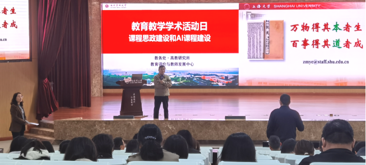 为深入贯彻落实教育部关于全面推进高等学校课程思政建设、加快教育数字化转型的部署要求,落实立德树人根本任务,3月6日上午,我校在第一学术报告厅举行新学期首次“教育教学学术活动日”主题讲座,特邀上海大学原副校长、二级教授、博士生导师叶志明作题为“课程思政和智慧课程建设”的专题报告。学校党委副书记、校长何涛出席活动,各院系分管教学领导、教务科长、校级智慧课程负责人及骨干成员、教师代表等近200人参加。讲座由教务处处长郑小莉主持。