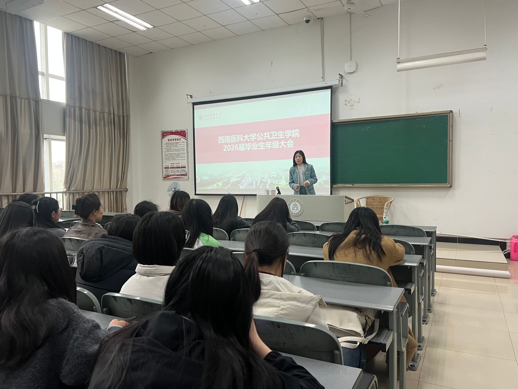 3月6日下午,公共卫生学院2026届毕业生年级大会在海川楼506教室顺利召开。会议由学生科科长彭丽冰主持,毕业年级辅导员袁子璐及2026届全体毕业生参会。