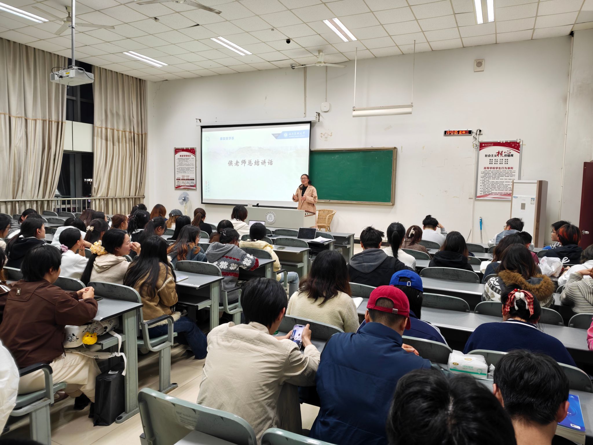 会上,康复医学系12个班长依次上台,围绕学风建设方面、班级管理方面、班团一体化建设、专业实践拓展、心理健康教育、职业发展规划等方面深入总结。在问题剖析环节,各班实事求是地分析了课堂出勤管理、活动参与度等方面存在的不足,并提出针对性整改措施。随后,侯萍从角色再认知、团队建设、活动策划、时间管理、领导力塑造等五个方面进行了深入浅出的讲解,以优秀班干部的真实案例,启发同学们如何根据自身优点和特长,做好学生工作。希望同学们始终牢记“服务者”的身份,将服务同学作为工作的出发点,不忘初心,方得始终,将每一次任务和挑战都视为学习和成长的机会,在实践中不断突破自我舒适区,通过修炼品格、提升才能,用行动感召他人,成为真正的引领者。