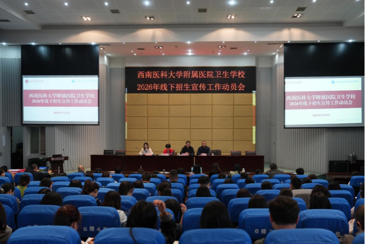 3月13日下午,附属医院卫校在城北校区第二学术报告厅召开2026年线下招生宣传工作动员会。学校领导班子成员、全体教职工参加会议,会议由党委书记刘文胜主持。