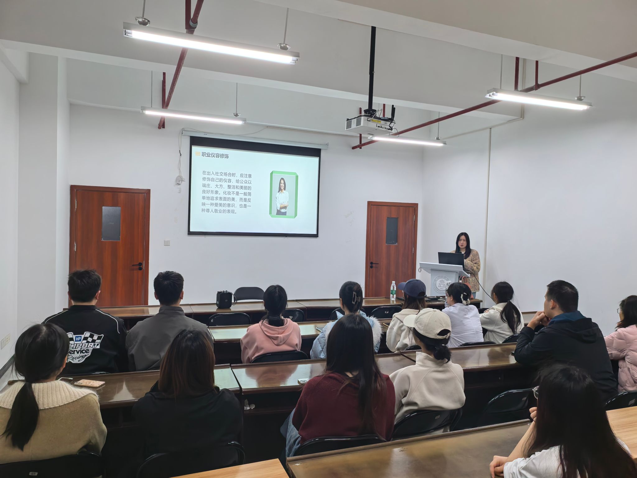 本次培训围绕“礼仪赋能职场,细节成就专业”的主题展开。陈丽如结合医药行业特点与学生未来职业发展需求,系统地从仪容、仪表、仪态三大维度进行了深入浅出的讲解与示范。