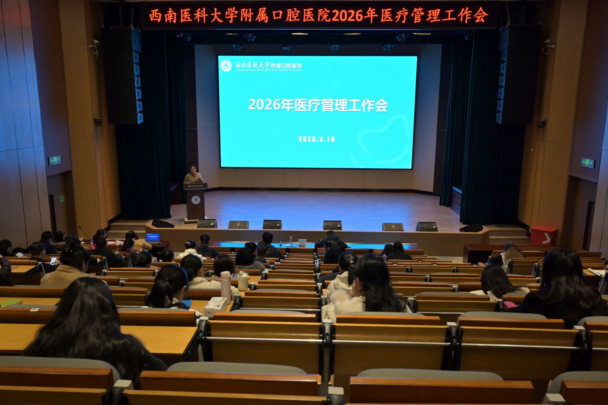 为深入贯彻落实国家、省、市卫生健康工作决策部署,坚持以人民口腔健康为中心,持续提升医疗质量与安全管理水平,加速推进医院高质量发展,3月18日下午,附属口腔医院在院本部学术报告厅召开2026年医疗管理工作会议。医院全体在家院领导出席会议,医疗质量与安全管理委员会成员、月度工作例会成员及临床科秘书参加会议。