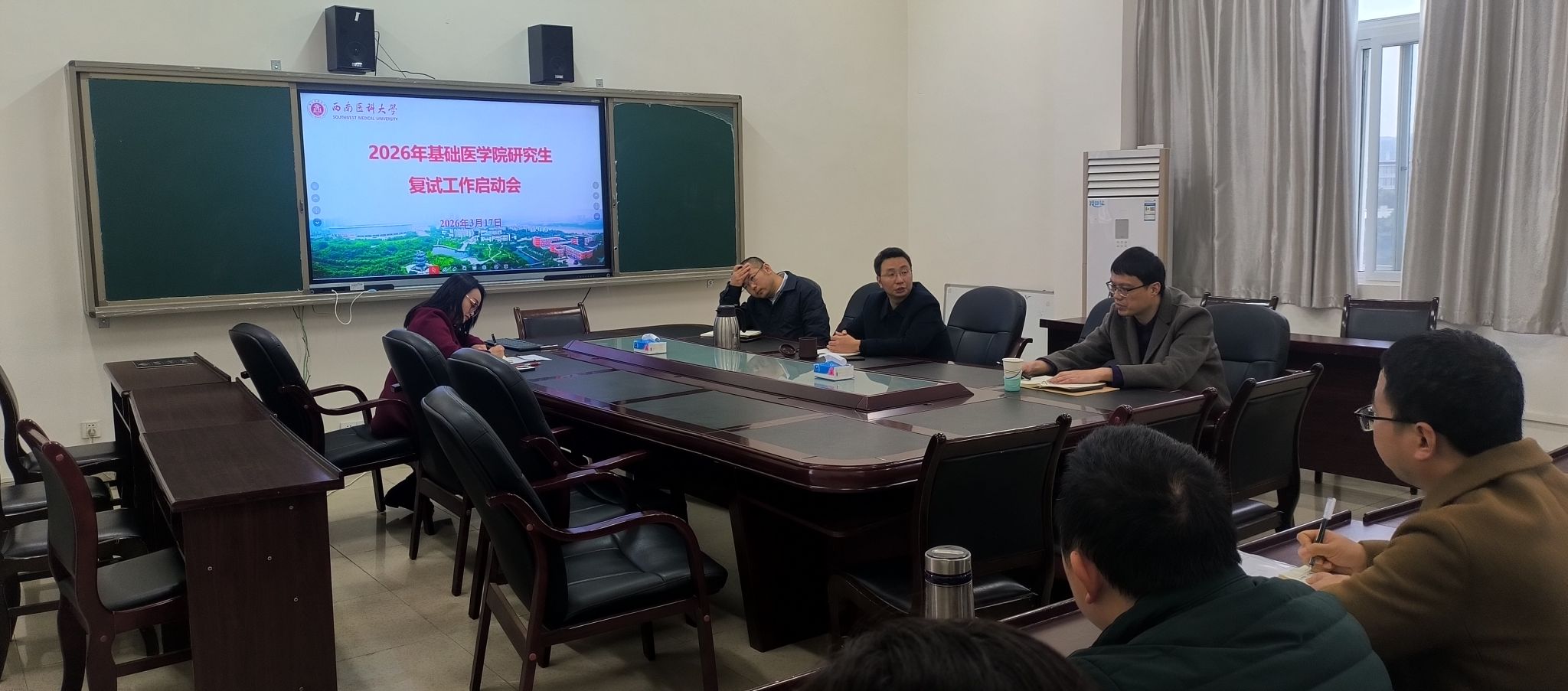 为全面部署2026年研究生复试相关工作,确保复试工作平稳有序开展,基础医学院于近日在鸿文楼4-1会议室召开了研究生复试工作启动会。会议由学院院长谭晓秋主持,各二级学科负责人及相关工作人员参加会议。