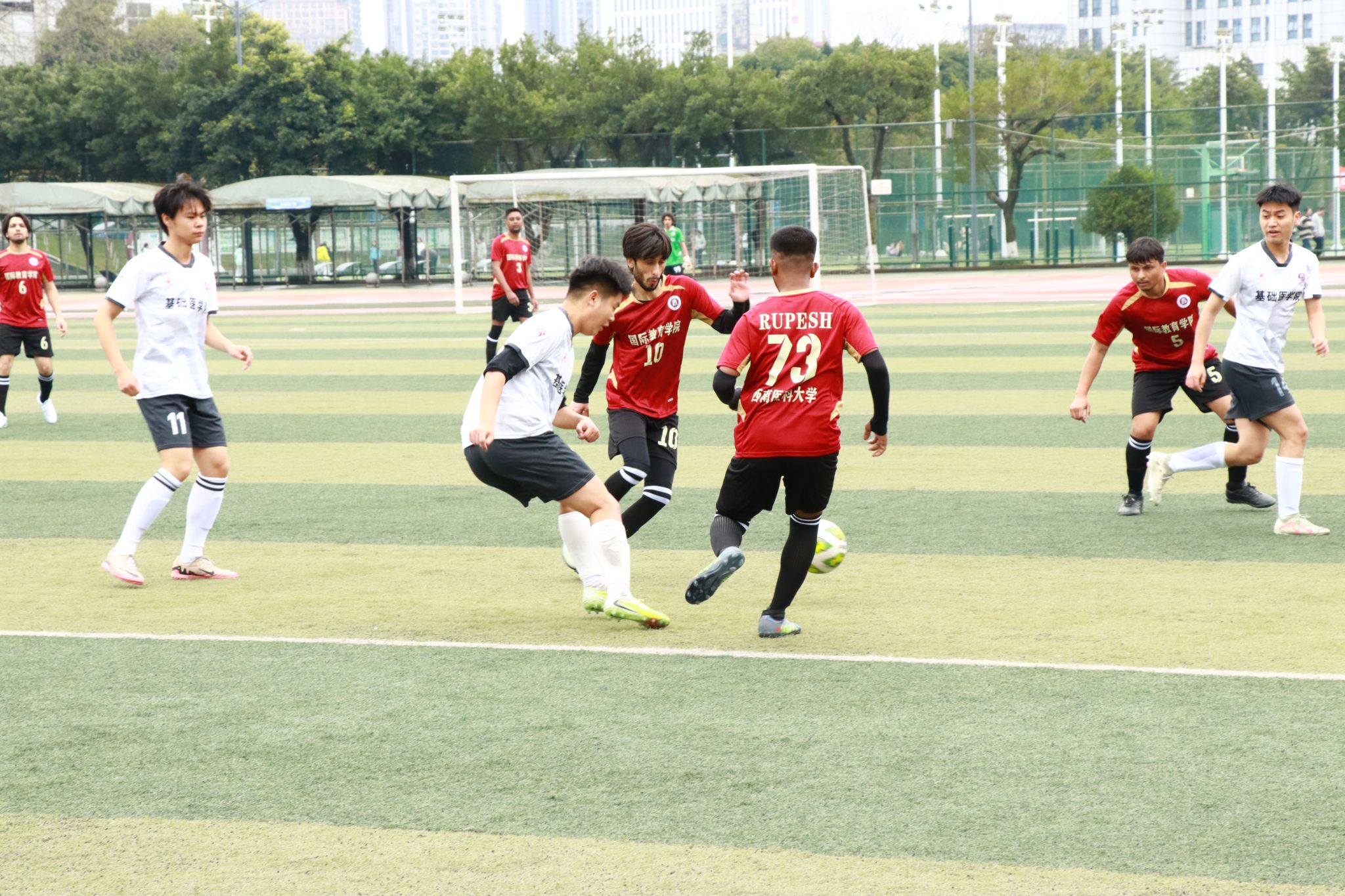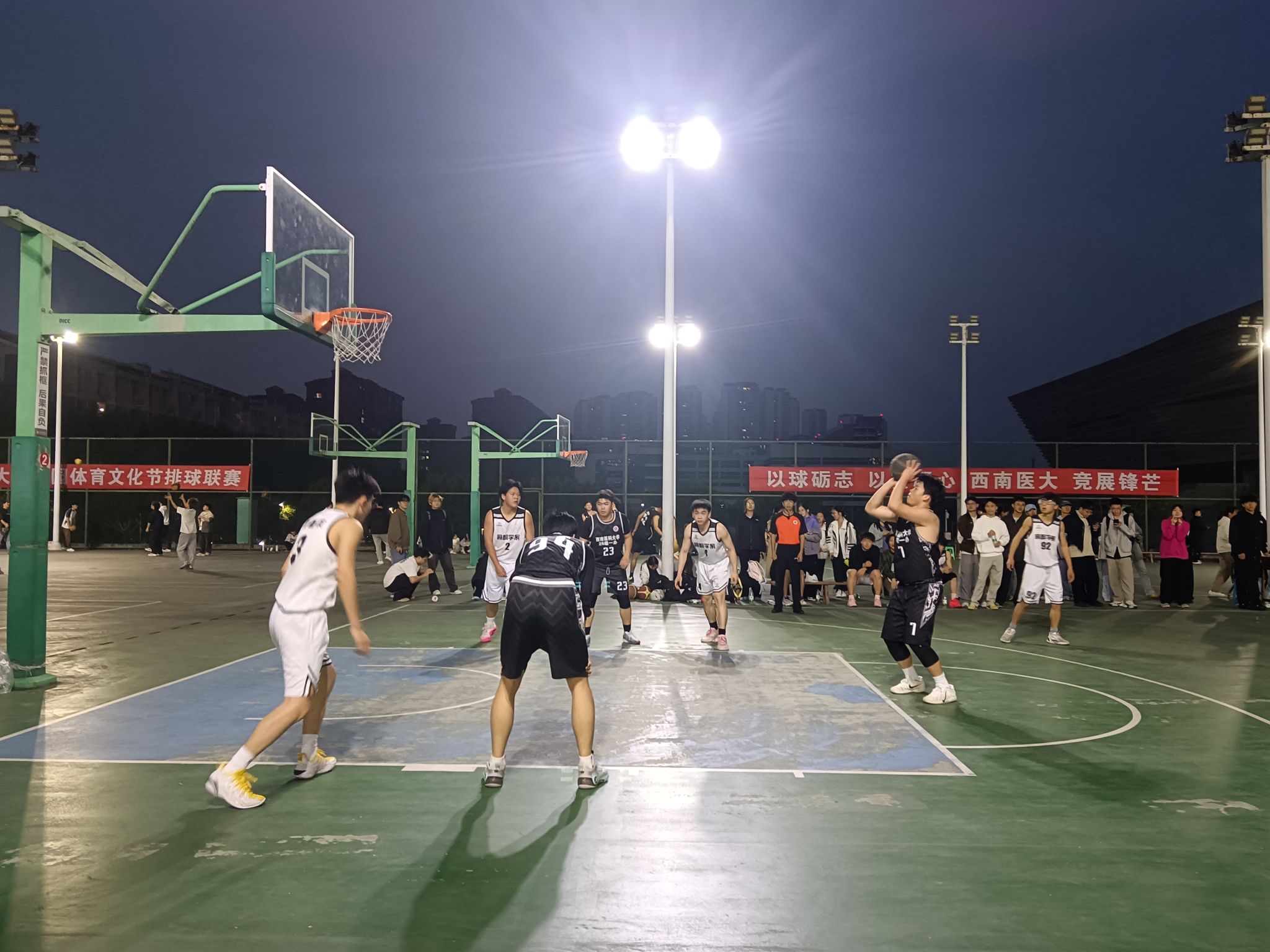 赛场上,运动员们团结协作、奋力拼搏,攻防转换间尽显默契配合,每一次精彩的得分都引来阵阵喝彩,充分展现了西南医大学子朝气蓬勃、昂扬向上的青春风貌与体育精神。