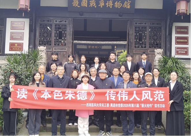 为深入学习贯彻习近平新时代中国特色社会主义思想,传承红色基因,赓续精神血脉,3月28日上午,护理学院关工委常务副主任雷磊,专职组织员、学生委员工作站站长吕春及学生委员代表赴护国战争博物馆,参加西南医科大学第二批二级学院关工委学生委员聘任仪式暨第八届“薪火相传”读书会启动仪式。