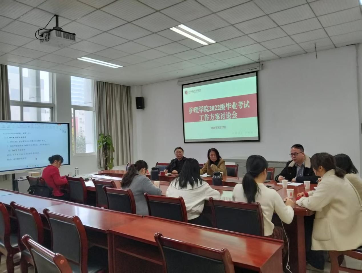 近日,护理学院召开2022级毕业考试工作方案专题讨论会。学院教学督导专家傅静教授、陈丽教授,教务科临时负责人,《儿科护理学》课程负责人,《基础护理学》课程负责人,以及年级辅导员、护理教学实验中心实验员、教务科助理等相关工作人员参会,会议由傅静教授主持。