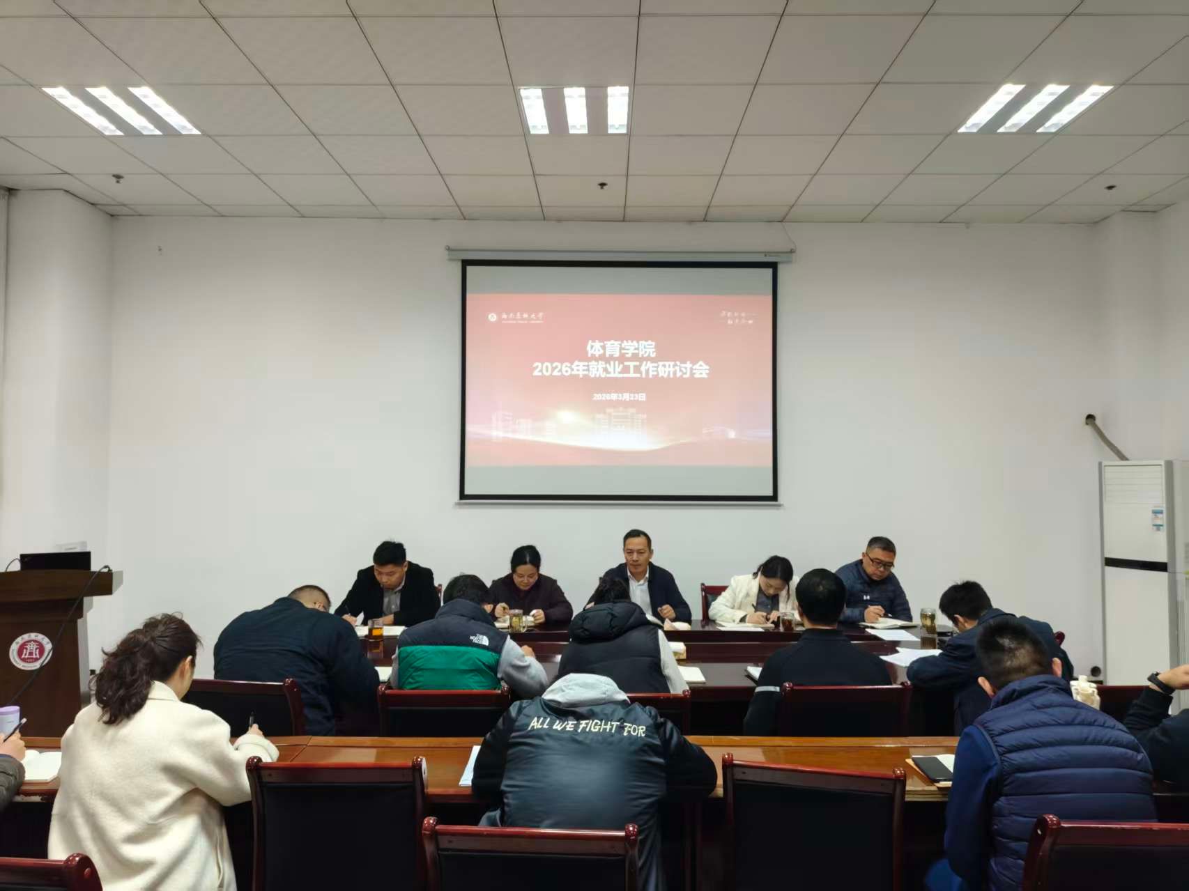 近日,体育学院召开2026届毕业生就业工作推进会,专题研究部署毕业生就业工作。学院党政领导班子、各专业负责人及就业工作小组成员参加会议,会议由学院党委副书记黄莉主持。