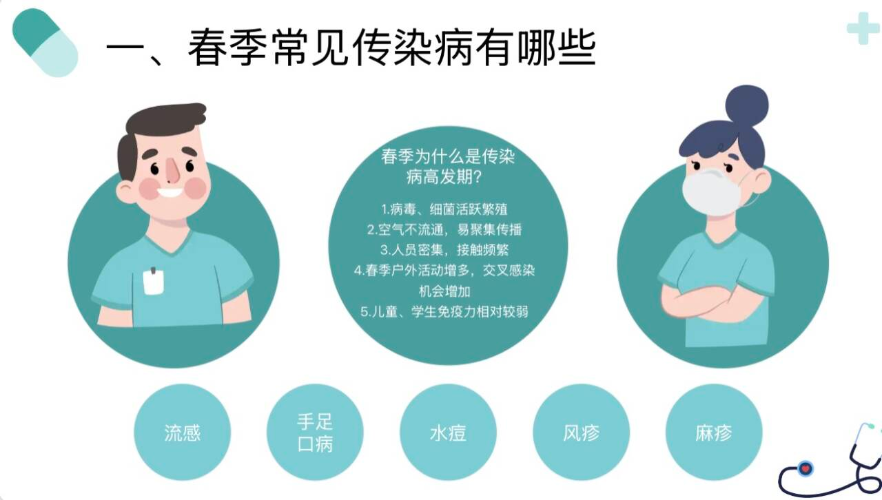 春季气温回暖,各类传染病进入高发期,为普及科学防控知识,筑牢校园健康防线。近日,儿科学系开展线上春季常见传染病预防知识宣传,共计200余人参加。