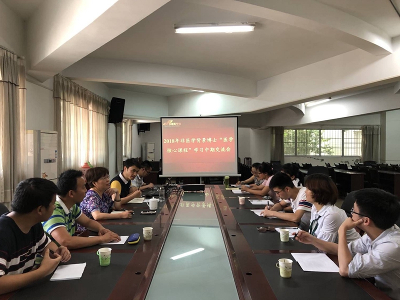 2018年5月16日上午,基础医学院在本院会议室召开了“非医学背景博士医学核心课程学习和教学能力培养”中期座谈会。基础医学院党委书记赵珍先、主持行政工作副院长代荣阳、近三年新进非医学背景的10名博士参加了座谈会,会议由代荣阳副院长主持。