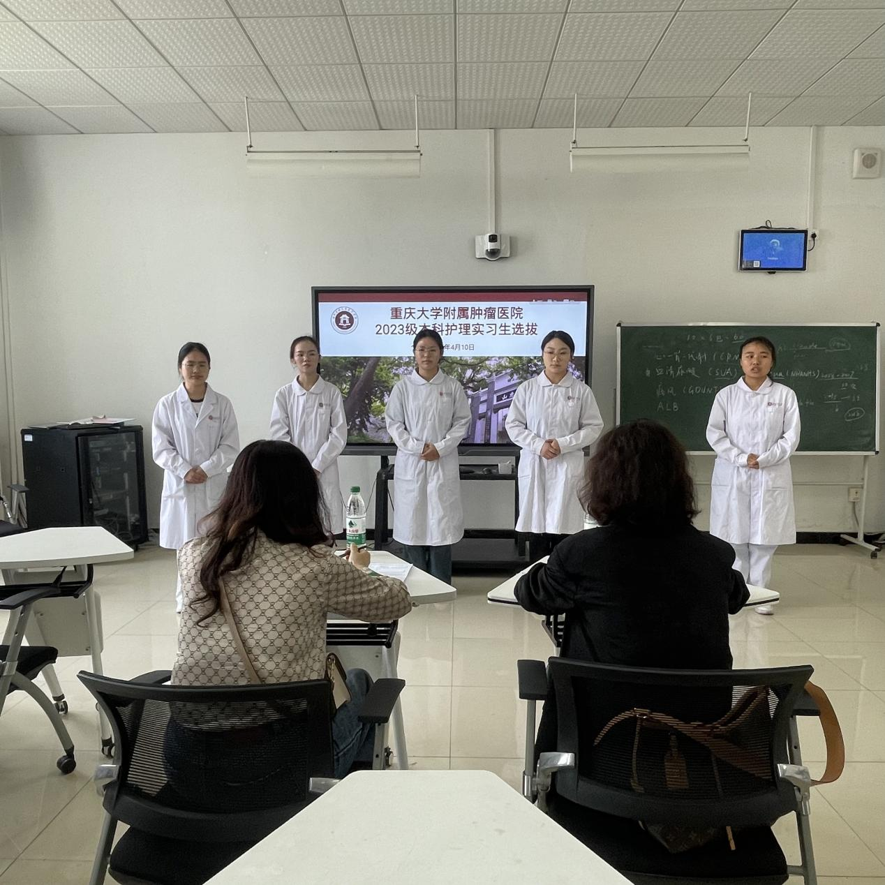 4月10日下午,护理学院在海川楼5-8会议室组织开展了实习生选拔。由重庆大学附属肿瘤医院护理部副主任张海梅和教学干事唐玲老师对2023级学生进行面试。学生科科长陈晨、2023级辅导员魏梦、杨柳以及40余名学生参与。