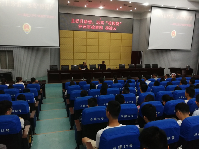 5月24日晚,由保卫处与学生工作部共同举办的“且行且珍惜,远离‘校园贷’”专题讲座在城北校区逸夫图书馆学术报告厅举行。讲座邀请泸州市检察院检察官杨凌云主讲,保卫处副处长杜杰主持了讲座。全校300余名师生代表现场聆听了讲座。