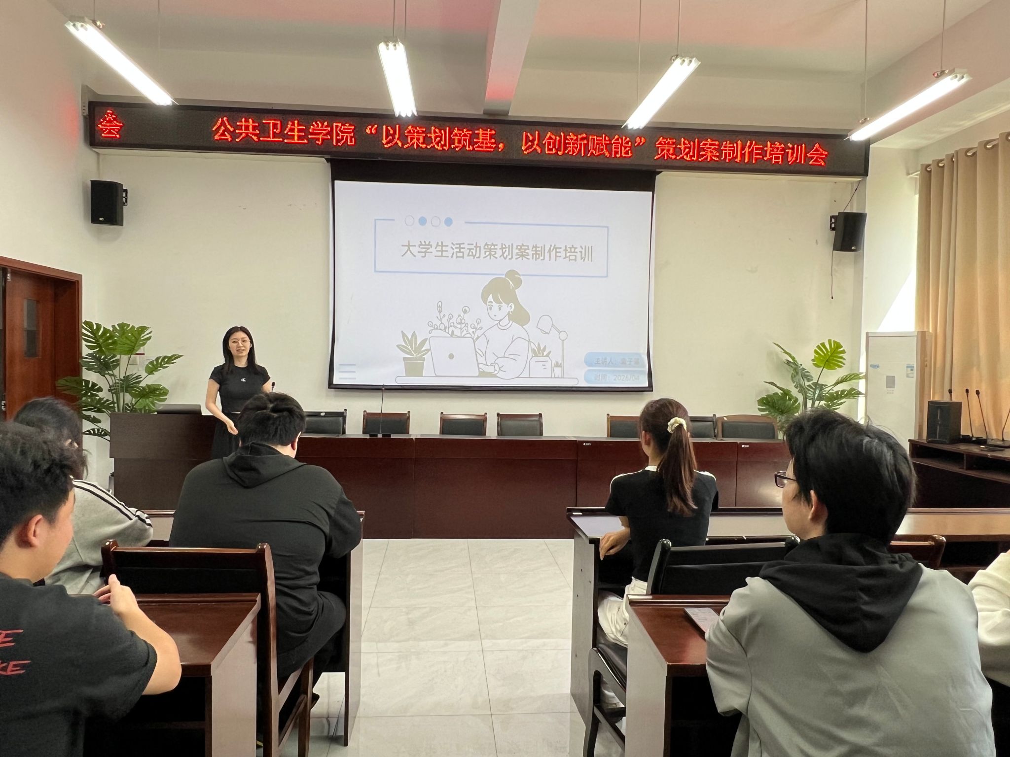 本次培训采用理论讲解 + 案例拆解 + 现场答疑的形式,内容实用、针对性强。讲师围绕策划案完整框架、核心写作技巧展开系统授课,重点讲解政策 + 行业 + 专业 + 需求四层论证、SMART 目标设定、经费预算、应急预案及创新点提炼等关键内容,并结合公共卫生类双创与公益项目案例逐段示范,让同学们快速掌握实战方法。活动现场秩序井然,学习氛围浓厚。同学们认真记录、积极提问,袁子璐逐一耐心解答策划撰写中的困惑。