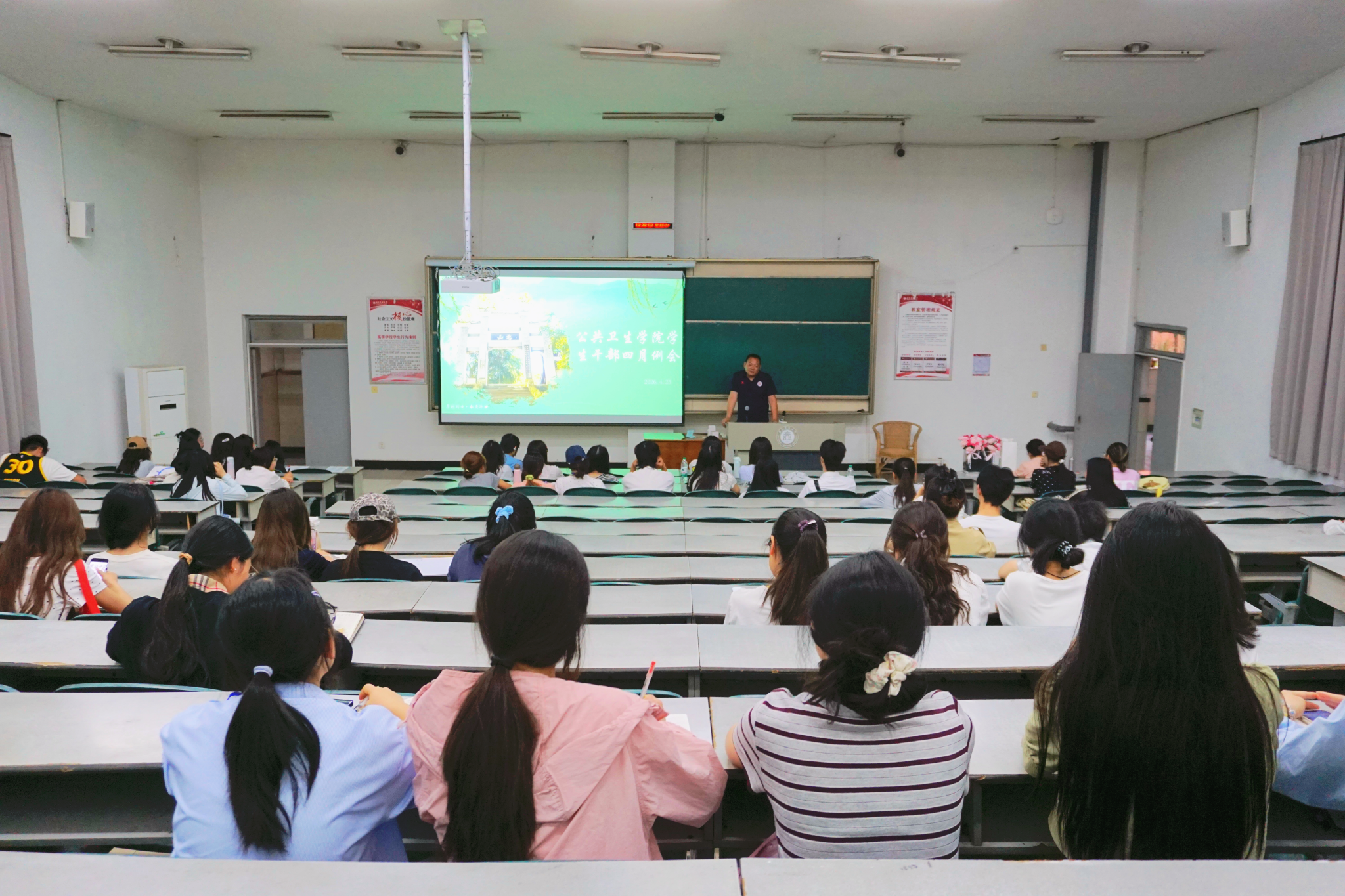 为进一步加强学院学生干部队伍建设,明确阶段性工作重点,提升学生干部综合履职能力,4月25日晚,公共卫生学院在荟文楼105教室举行四月学生干部工作例会。本次会议特邀学院党委副书记金川出席,学院学生会全体干部、各班级学生骨干参会。