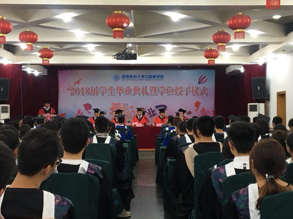 岁岁花相似,今朝别样红。在这个绿意盎然、草长莺飞的六月,我们又迎来了毕业季。6月26日下午,西南医科大学口腔医学院举行了2018届毕业生毕业典礼暨授位仪式。院长聂敏海、党委书记李正新、党委副书记徐茜、副院长肖金刚、副院长黄跃、口腔医学院学位评定分委员会委员以及各教研主任、研究生导师、相关职能部门负责人等出席了典礼。典礼由徐茜主持。