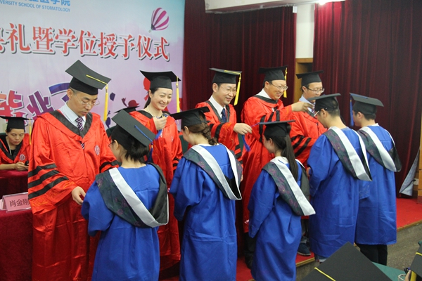 口腔医学院学位评定分委员会委员为2018届研究生、本科毕业生拨穗授位。