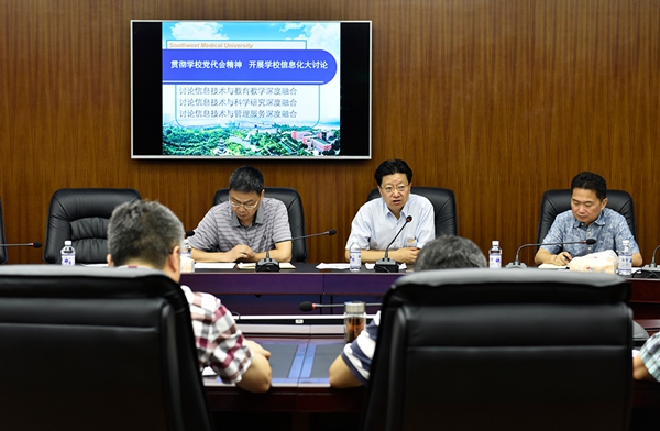 学校信息化建设与管理领导小组办公室副主任潘宏通报了学校网络安全和信息化建设管理大学习、大讨论、大调研工作进展情况;专家组组长杨富华汇报了学校信息化建设使用情况、存在的问题和建议措施;参会人员围绕教育部《教育信息化‘十三五’规划》、《教育信息化2.0行动计划》和学校党代会提出的“136”发展战略,针对学校信息化建设与应用、本部门工作情况,积极为信息技术与教育教学、科学研究和管理服务深度融合创新,为学校网络安全和信息化建设管理建言献策。