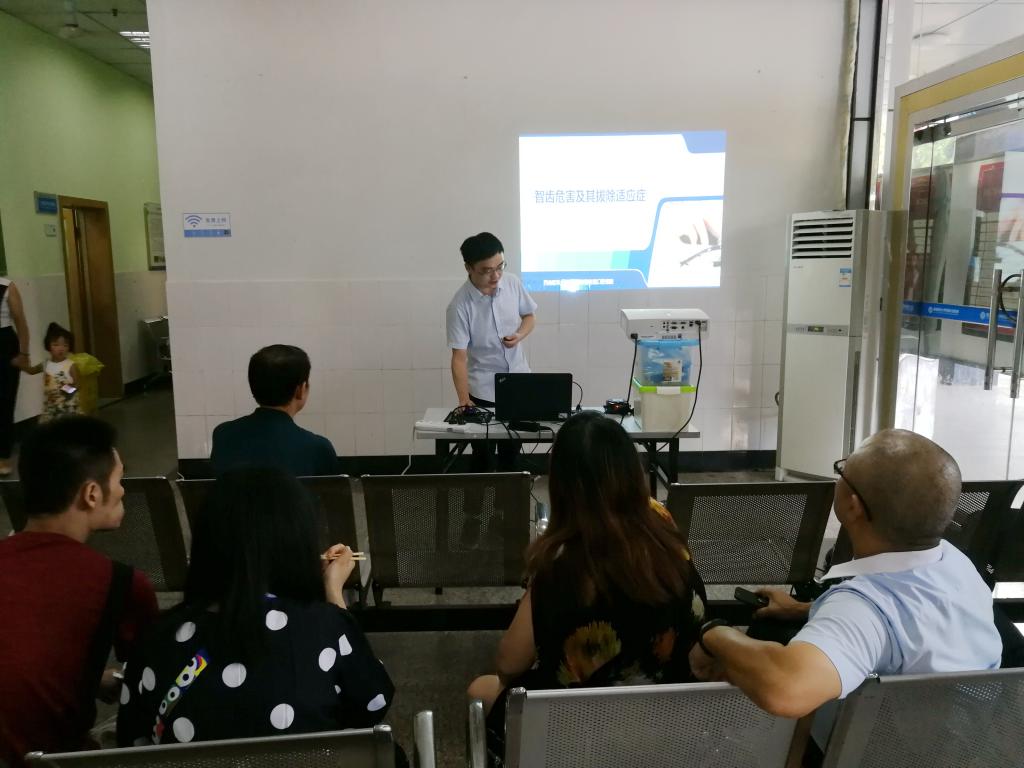 8月26日上午,口腔医学院8月口腔健康大讲堂在一号楼一楼大厅如期开讲,本期大讲堂由口腔颌面外科医师鲜红春主讲,题目是:智齿危害及其拔除适应症。