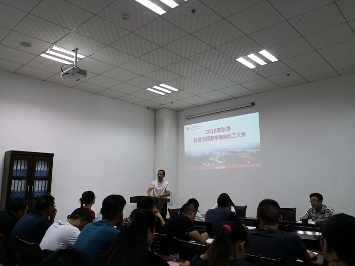 8月30日上午,体育学院召开2018年秋季新学期教职工大会,学学院全体教职工参加了会议。学院党总支书记孔晓明主持会议。