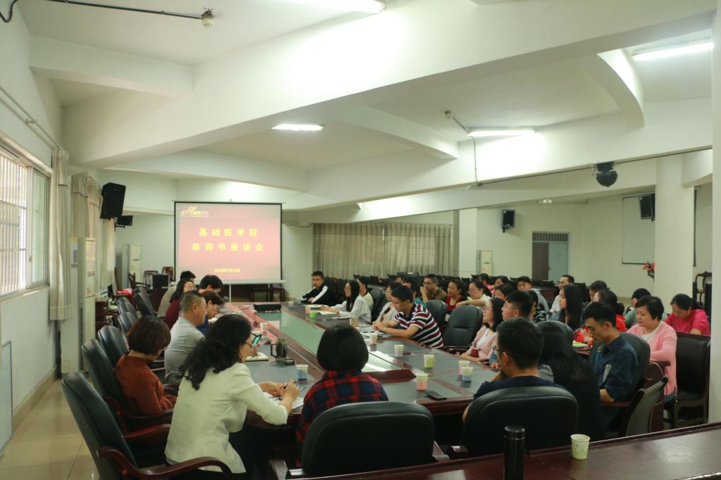 9月10日下午,基础医学院在鸿文楼底楼基础医学院会议室召开教师节座谈会,基础医学院新进教师、各科室教师代表、党政领导齐聚一堂,庆祝第34个教师节。座谈会由学院党委书记赵珍先主持。