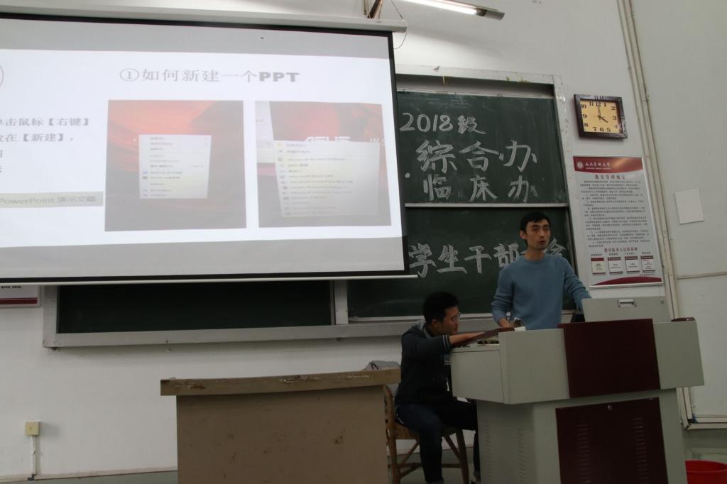 10月21日下午,基础医学院2018级学生干部培训大会第二讲在明理楼203教室开讲。参会人员包括临床办和综合办的学生会、团总支、自律会的所有学生干部及各班班长、团支书。临床办年级主任裴宇作主讲老师。