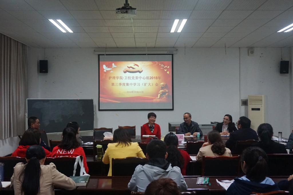 10月11日下午,护理学院·卫校党委结合工作实际,在海川楼四楼会议室召开了2018年第三季度院校中心组学习(扩大)会。会议特别邀请了学校党委常委、宣传部·统战部部部长柏柯作专题辅导讲座。院级中心组全体成员和部分党员学生代表40余人参加了会议。会议由护理学院·卫校党委书记孙鸿燕主持。