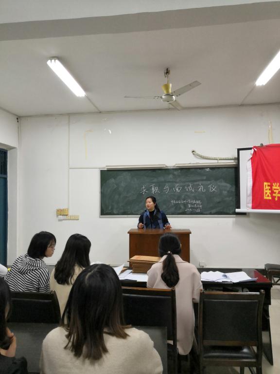 10月23日晚上7点,由附属医院第四十二党支部主办的“求职与面试礼仪”讲座在忠山校区临床医学院会议室成功举行。此次讲座由医学影像系学生党支部书记胡超老师主讲,学生党支部成员及在校毕业年级学生参加了本次讲座。