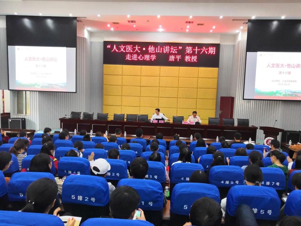 为进一步推进学生心理健康教育和心理学学科建设工作,为学生的健康成长保驾护航。10月26日下午,人文与管理学院在城北校区图书馆学术报告厅举行心理健康专题教育暨第十六期“人文医大·他山讲坛”。四川省心理学会老年心理健康专业委员会主任委员、四川省老年医学学会副会长,成都医学院副院长唐平教授应邀作题为《走进心理学》的学术讲座。人文与管理学院党政领导、师生员工300余人聆听了讲座。讲座由人文与管理学院院长赵成文主持。