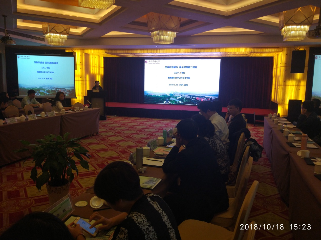 会上,贾红作了题为“加强校地融合,强化实践能力培养”的专题报告。贾红围绕实践教学、第二课堂、创新教育等方面,阐述了公共卫生应用型人才培养的探索路径,分析了当前公共卫生教育存在的主要问题,并针对实用化和应用型的培养目标,强调了注重与疾控中心密切合作的必要性。