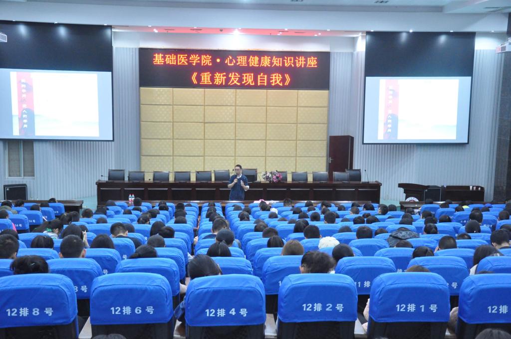 为让院系新生掌握更多心理健康知识,及时应对大学新生活中产生的烦恼、焦虑和疑惑,11月12日晚,由基础医学院开展的题为《重新发现自我》的心理健康知识讲座在城北校区逸夫图书馆学术报告厅举行。讲座由人文与管理学院副书记陈屹主讲,基础医学院2018级全体辅导员老师和300多名同学聆听了讲座。