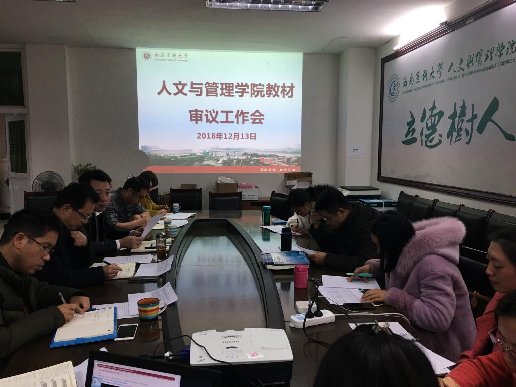为了进一步加强学院教学工作,确保2018-2019学年第二学期教学工作顺利开展,人文与管理学院于12月13日下午在荟文楼一楼会议室召开教材审议工作会。人文与管理学院党总支书记、副书记、全体委员、学院教学工作委员会全体成员参加了会议,会议由学院副院长谷满意主持。