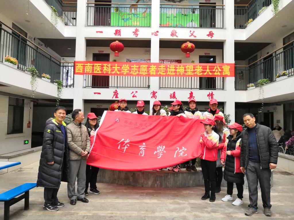 12月11日下午两点,体育学院运动康复“运动易关爱”志愿者队来到泸州市神望敬老院,为敬老院的老人们带来了欢声笑语,在寒冷的冬天给他们送去一份关爱与温暖。