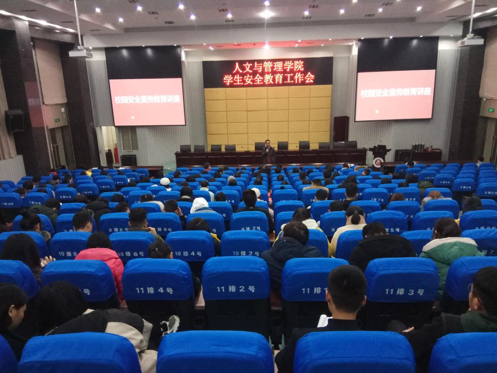 为进一步加强学生安全教育和管理工作,落实好学生安全信息员制度,1月2日晚,人文与管理学院在逸夫图书馆学术报告厅召开学生安全教育工作会议。学院党总支副书记陈屹、学生科全体成员及各班班长、团支书、寝室室长、学生会主要干部近200人参加会议。