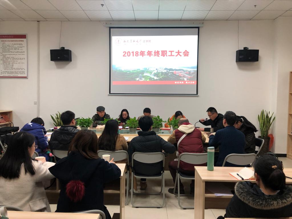2018年1月18日下午3点,法学院2018年年终职工大会在法学院图书资料室召开,全体教职工参会,会议由院长罗刚主持。