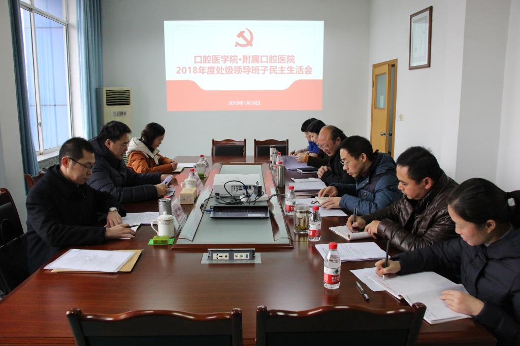 按照学校党委总体部署,2019年1月18日下午,口腔医学院·附属口腔医院2018年度处级领导班子民主生活会在医院小会议室举行。学校党委书记廖斌同志,工会主席陈先红、党委办公室副主任娄坤同志全程参会指导。医院领导班子全体成员、助理调研员、党政办公室、纪监审办公室及组织人事科负责人列席会议,会议由医院党委书记李正新同志主持。