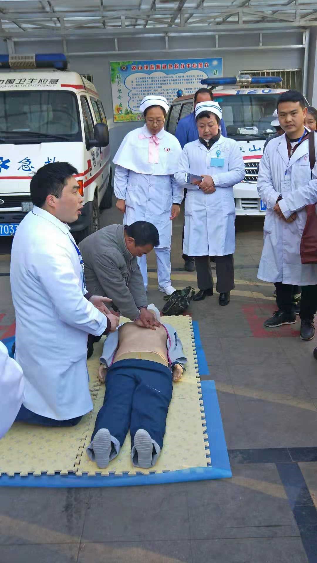 胡迎春还为就诊群众普及急救知识,他使用模拟人为大家演示心肺复苏急救方法,并手把手指导群众进行实际操作。