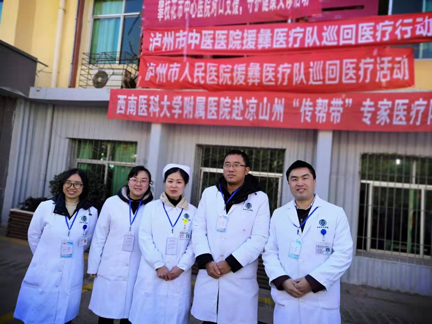 2月27日上午,附属医院对口支援凉山州盐源县医疗队联合其他对口支援单位,与盐源县人民医院25名专家一起,在盐源县人民医院前开展义诊活动。