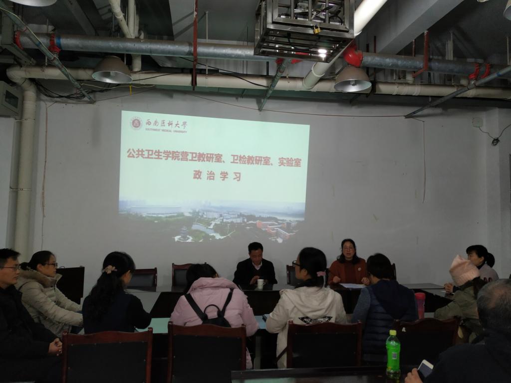 3月13日上午,公共卫生学院营养与食品卫生教研室、卫生检验与检疫教研室和实验教学中心在奥体中心三楼会议室组织了新学期第一次政治学习。全体教职工参加政治学习。由支部书记李星主持政治学习。